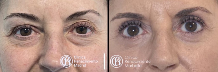En el párpado inferior, la laxitud de las estructuras que aparecen con la edad provoca fundamentalmente dos cambios. Por un lado, la grasa orbitaria se hernia hacia adelante, haciéndose visible en la piel y dando lugar a las conocidas “bolsas”. En segundo lugar, el estiramiento o descolgamiento de la piel y músculo orbicular, da lugar a arrugas, pliegues y descenso del párpado inferior.